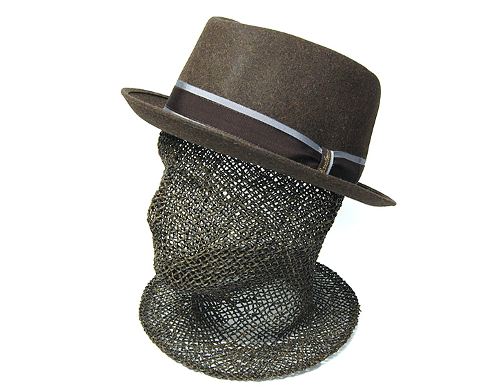 ミックス調のシックなトーンのファーフェルトを使ったポークパイハット。