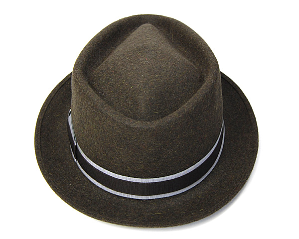 ダイヤ型のTOPを持つシルエットは中折れ帽とも違った雰囲気で