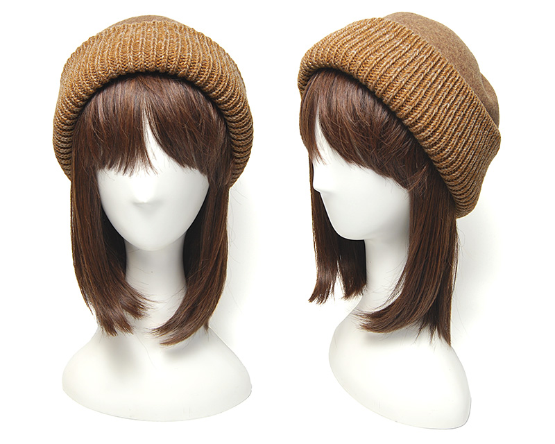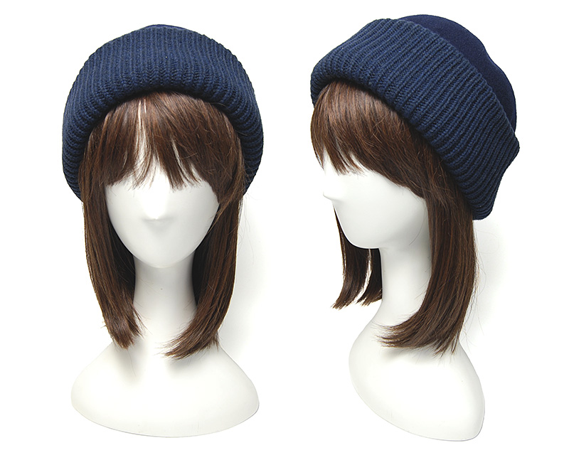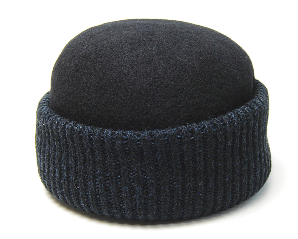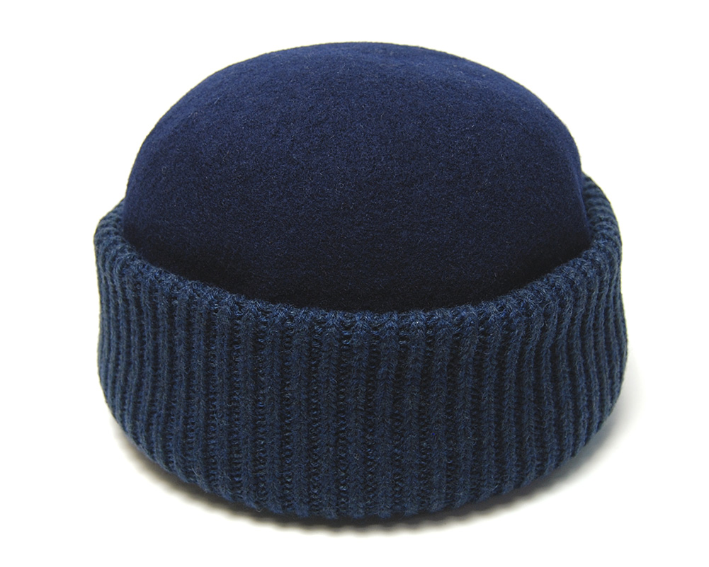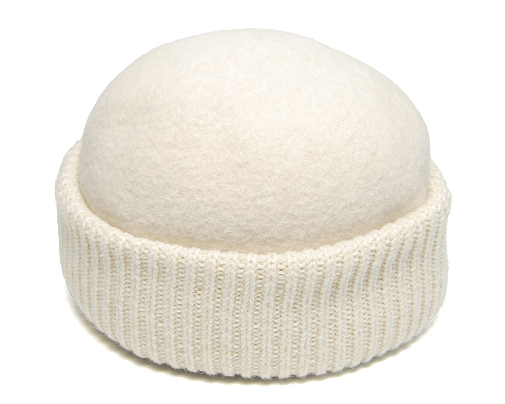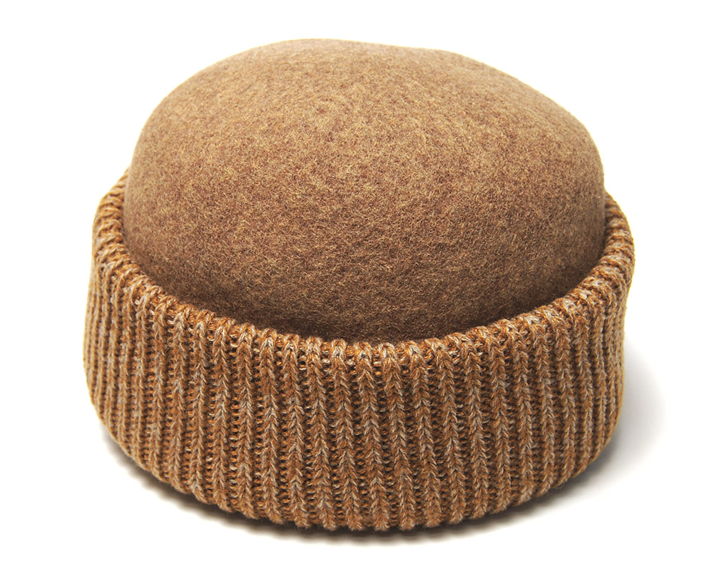 クラウンはウールを縮絨したフェルトを使用し、裾にふんわりした厚みのあるリブニットを付けた