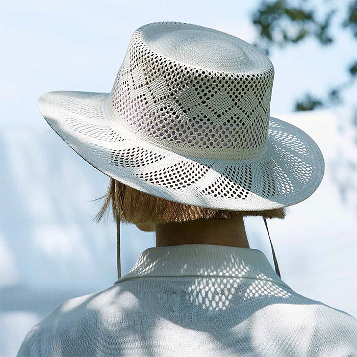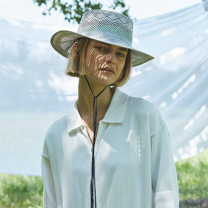 日差しを美しく纏うためのサマーハット。装いに静かな個性と上質な余韻を添えます。