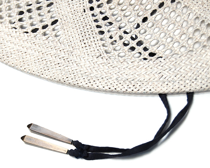 leiは、デッドストックのレース編み帽体を使ったつば広のサマーハット。