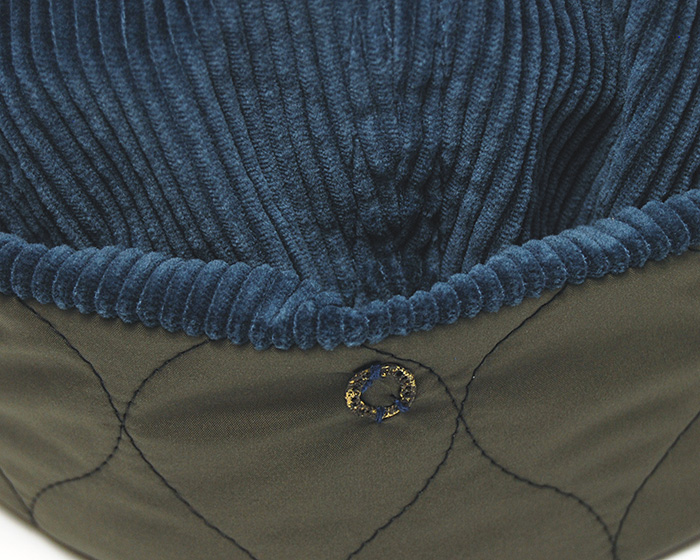 あたたかみのあるコーデュロイ素材にイヤーフラップ部分は撥?加?のキルティング?地を使?。