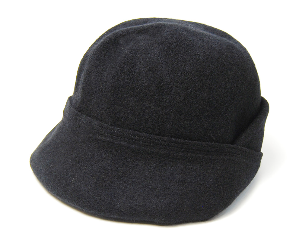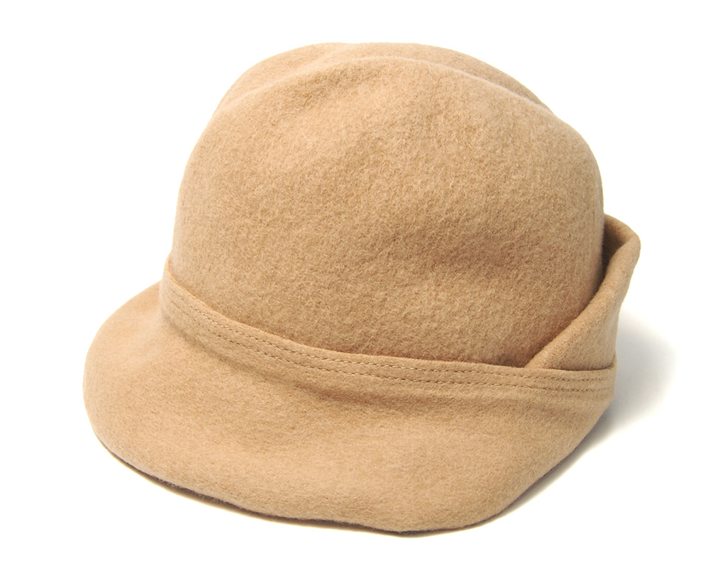 折り返しの部分をぐっと上にずらして被ると、ベレー帽のような雰囲気に変化します。