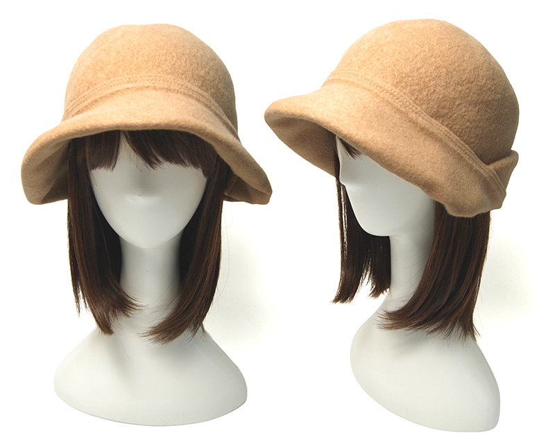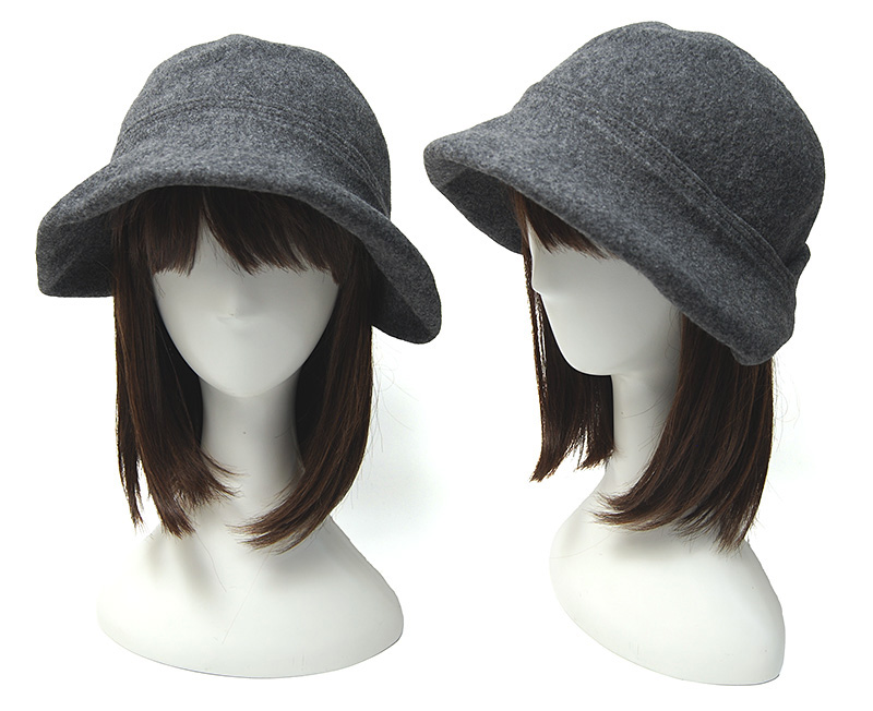 つば部分の折り返しの使い方で、さらりと違う帽子へと変化させることができるデザインで