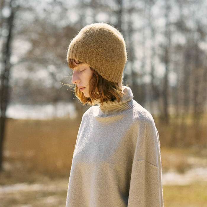 軽やかでありながら保温性にも優れたニット帽子です。