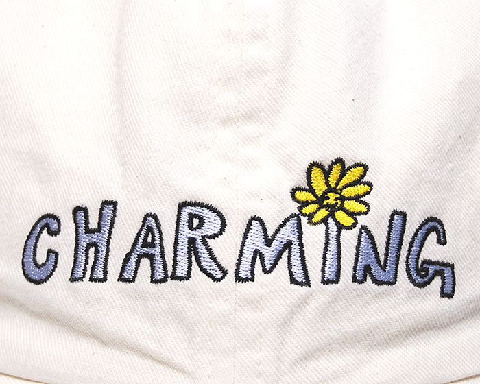 今回の帽子は、刺繍後にヴィンテージウォッシュ加工をすることで