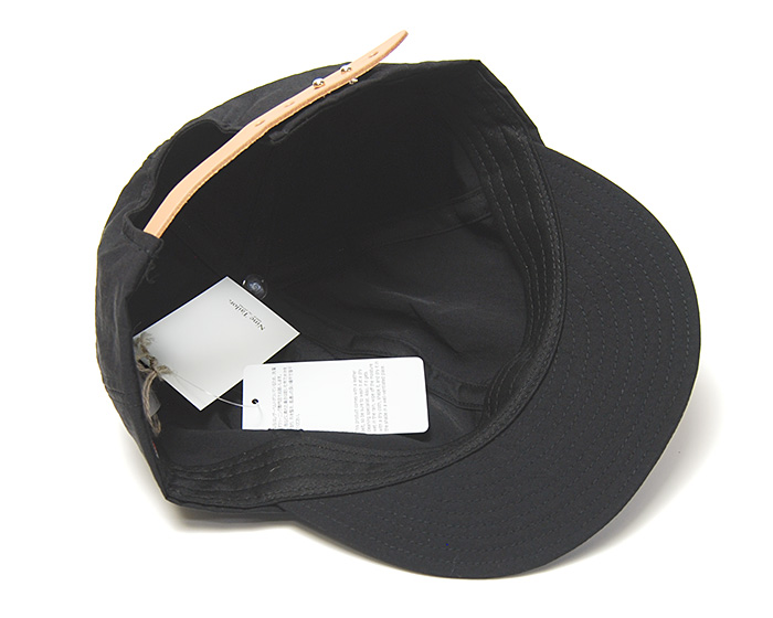 シンプルな帽子のアクセントになっている後ろのレザーベルトは