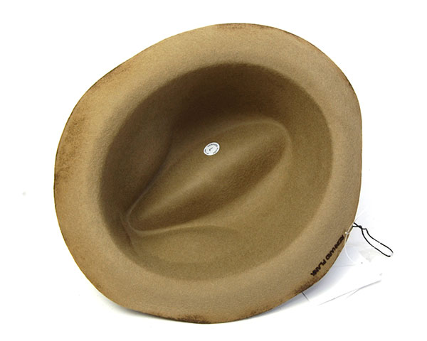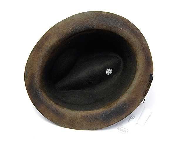 | カラー | コール(COAL BURNED,チャコールグレーの帽体を焼いてブラウン系の焦げ目をつけた色合い) カーキ(KAHKI BURNED,濃い目のオリーブの帽体を焼いて黒茶の焦げ目をつけた色合い) ベージュ(BEIGE BURNED,ベージュの帽体を焼いてこげ茶の焦げ目をつけた色合い) *コールとカーキは、焦げ部分が焦げ茶や黒っぽい色になるため外観は似た色合いの仕上がりです。 |