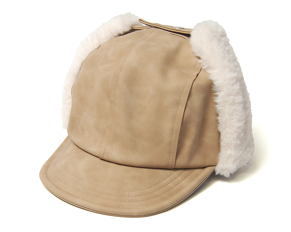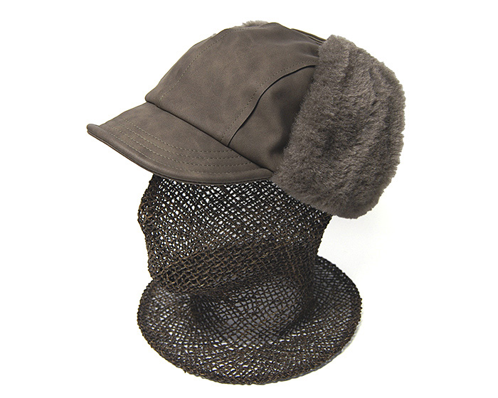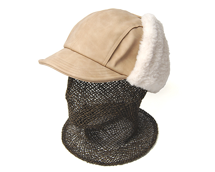 今回の帽子は、耳当てが付いたつば付きの飛行帽タイプを