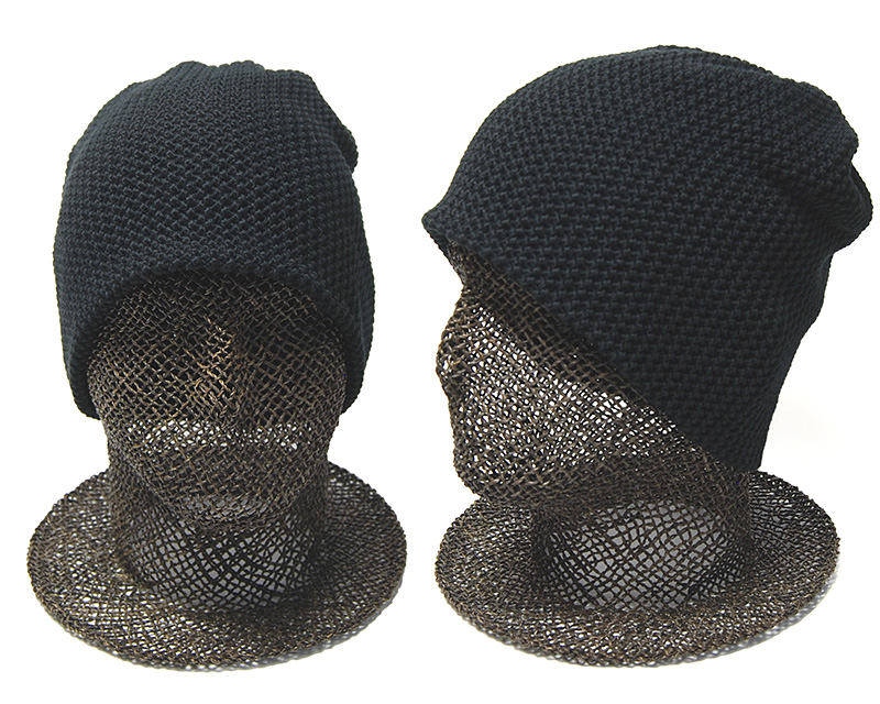 抗菌防臭加工したコットン糸をメッシュ状に編んだ通気性の良いサマーニット帽子。程よいボリューム感があってシルエットも綺麗にかぶれます。