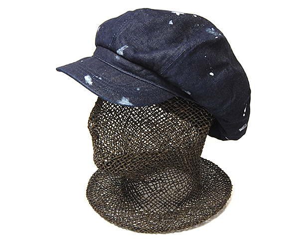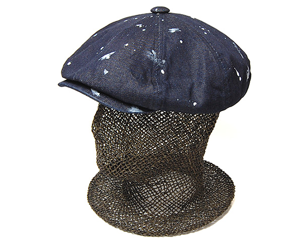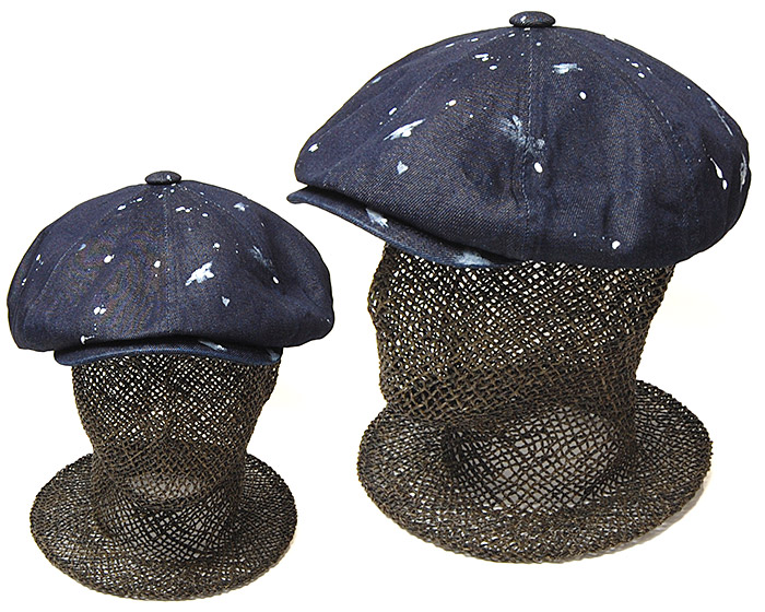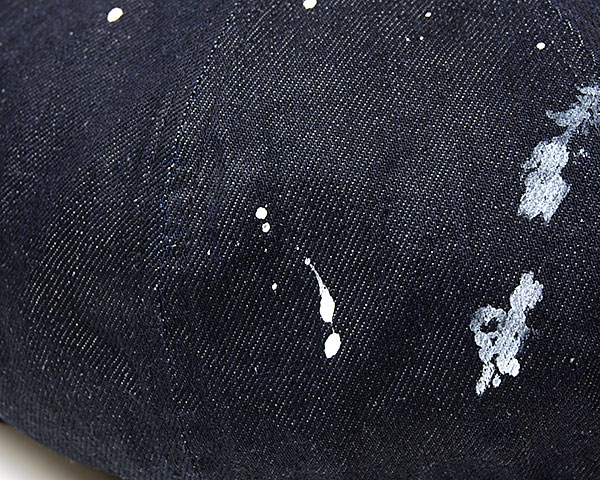 今回の帽子は、薄めのデニム生地にペイントを施した加工デザイン。