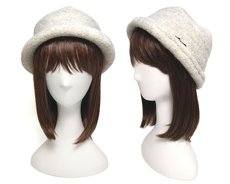 つば先がくるんと折り返っているので、特にベージュは焼売のようなイメージに。